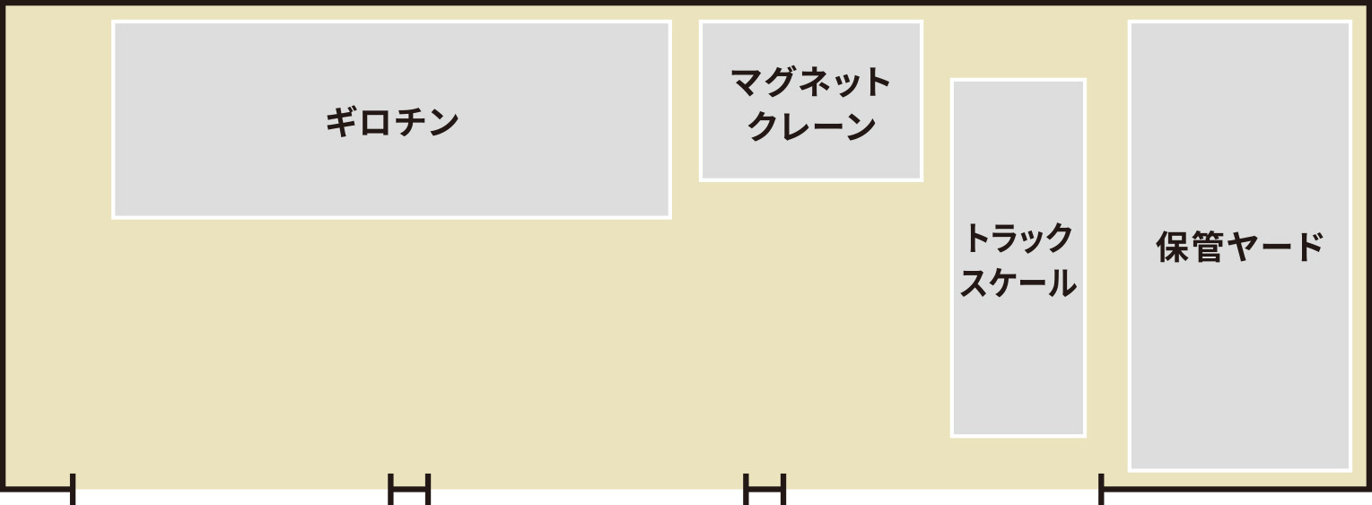 選別したスクラップを種類ごとに分け、出荷まで保管するヤードです。